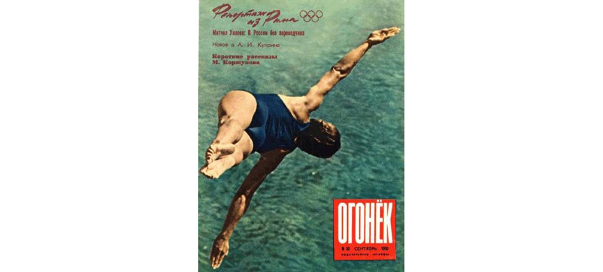 Полностью обойти своим вниманием спортивную тематику цензура, конечно, все-таки не могла. Так, накануне Олимпийских игр в Риме в 1960-м редколлегия «Огонька» решила поставить на обложку фотографию Бородулина «С вышки». Там была запечатлена чемпионка страны по прыжкам в воду, парящая в воздухе в момент прыжка. Кадр был сделан со спины.