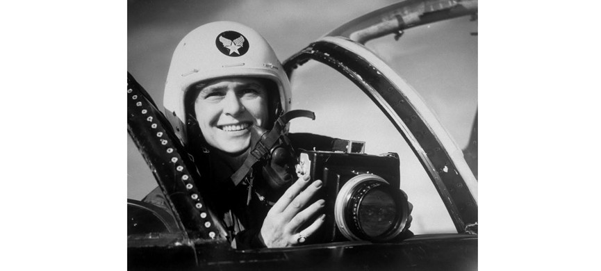 В августе 1941 года Бурк-Уайт вернулась в Америку. После того как США вступили в войну, фотожурналистку прикрепили к 97-й бомбардировочной группе ВВС США – снимать проводимые ею боевые действия в Европе. Маргарет стала первой женщиной-фотографом, получившей разрешение работать непосредственно на полях сражений. В конце 1942-го группу перебросили в Северную Африку, и фоторепортер последовала за ней на военном корабле, который был атакован немецкой подводной лодкой у африканского побережья. В результате попадания торпеды в нос судна Бурк-Уайт получила легкие ранения. Позже она убедила американское военное командование позволить ей сопровождать экипажи, проводившие бомбардировки немецких воздушных баз в Тунисе. В это самое время Бурк-Уайт сделала свой знаменитый автопортрет в летной форме на фоне бомбардировщика. Первого марта 1943 года фотография появилась в номере журнала Life и сделала Маргарет символом фронтового бесстрашия и оптимизма. После этого снимка коллеги фотографа стали называть ее «Несокрушимая Мэгги».