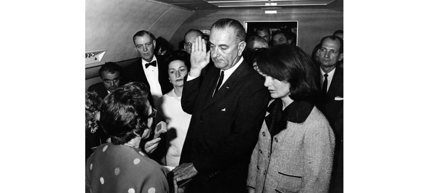 Линдон Джонсон приносит присягу прямо на борту самолёта