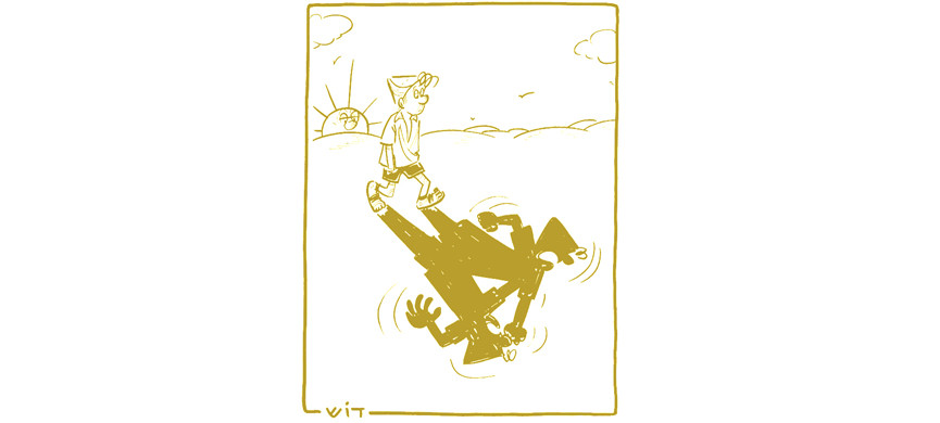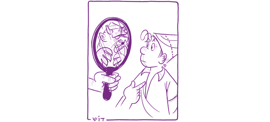 Именно таким и вышел Срулик: руки в карманах шорт, из-под «кибуцной панамы» торчит вихор. На одной из самых известных карикатур Гардоша Срулику показывают зеркало, откуда на него смотрит отражение – злобное усатое существо в кипе. Герой недоумевает: и это, мол, я?