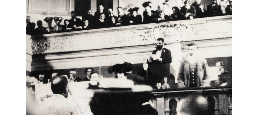 В 1892 году, когда вышла книга «Вырождение», Нордау познакомился с Герцлем, но судьбоносные «сеансы психотерапии» состоялись лишь три года спустя – в 1895-м. Идея провести Первый сионистский конгресс принадлежала Герцлю, но большую часть организационных вопросов взял на себя Нордау. Планировалось, что он пройдет в Мюнхене, но жившие там евреи воспротивились: они опасались потерять недавно завоеванное равноправие с немцами. В итоге конгресс состоялся в Базеле в августе 1897 года, и Нордау произнес перед собравшимися пламенную речь о положении евреев и их страданиях.
