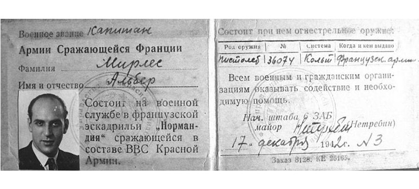 О казни отца Альбер узнает уже после войны. Сам же он был зачислен в британское Министерство авиастроения, где занимался инженерными разработками по преодолению немецких заградительных аэростатов: в тросах крепления этих аэростатов повреждались и разбивались союзные самолеты. В начале 1942 года Альберу, прекрасно владевшему русским языком, было поручено встретиться с советскими дипломатами и военным атташе в Лондоне – обсудить вопросы формирования французской авиачасти в составе Красной армии. В итоге Мирлес лично разрабатывал проект по созданию эскадрильи и встречался с каждым пилотом, в нее вступавшим. После этого в качестве заместителя военного представителя «Свободной Франции» генерала Пети он отправился в СССР вести переговоры. Результатом этих переговоров стало подписанное в ноябре 42-го соглашение о формировании на территории СССР французской авиационной эскадрильи. Окончательно сформирована эскадрилья была спустя десять дней в городе Иваново.