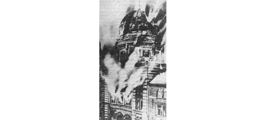 В Берлине одной из главных целей погромщиков стала так называемая Новая синагога на Ораниенбургерштрассе. Это роскошное здание в восточном стиле, с позолоченным куполом, способное вмещать до трех тысяч человек одновременно, уже давно раздражало немецких националистов. Синагогу построили еще в 1866 году. Но уже тогда историк-консерватор Генрих фон Трейчке написал: «Показная роскошь Новой синагоги – упрек христианам-немцам и показатель чрезмерного влияния евреев».