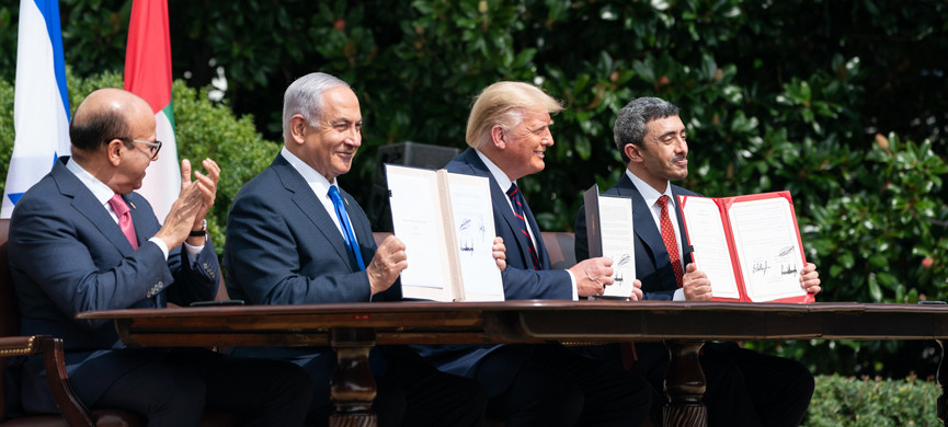 Ещё 13 августа случилось событие исторических масштабов – премьер-министр Израиля Биньямин Нетаньяху и наследный принц Абу-Даби шейх Мохаммед бин Зайед договорились о полной нормализации отношений между еврейским государством и Объединенными Арабскими Эмиратами. Подписание соглашения происходило в присутствии президента Трампа и, в соответствии с канонами пандемии, – онлайн. А уже 15 сентября в Белом доме было заключено уже всеобъемлющее соглашение, причем не только с Эмиратами, но и с Бахрейном. «Это настоящий исторический прорыв», – дал сам себе оценку Дональд Трамп.