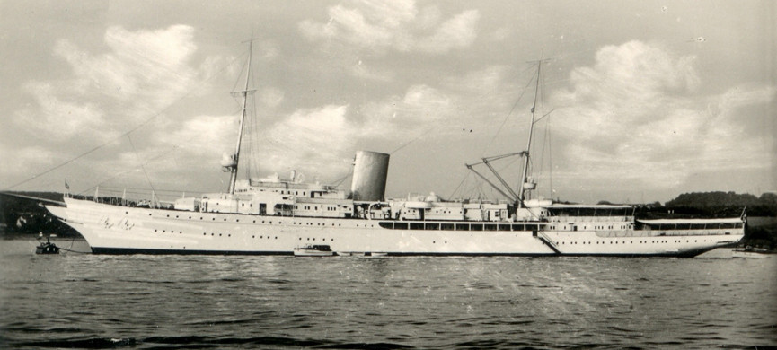 Aviso Grille строили в конце 30-х годов на верфи Гамбурга – по специальному заказу Гитлера. Фюрер рассчитывал триумфально прибыть на борту этого судна к берегам Темзы – после того как под натиском нацистов падет Лондон. До этого времени яхту использовали как место встреч и вечеринок нацистских бонз. Aviso Grille имела по-настоящему имперский размах. Длиной около 135 метров, яхта была вооружена до зубов: на ее борту стояли пушки, турели зенитных орудий, крупнокалиберные пулеметы. Но самое ценное находилось внутри – в интерьерах, которые создавали по прихотливым вкусам Гитлера. Полы холла и спальни фюрера покрывали восточные ковры. Обивку кресел и диванов делали из мягкой голубой кожи. Выходя из своих покоев, фюрер сразу же попадал в мини-бар. Барную стойку по его пожеланию создали похожей на земной шар – предмет его всегдашних мечтаний. Рядом со спальней Гитлера находилась еще одна спальня – ее выполнили в пурпурных тонах. Предполагали, хотя и бездоказательно, что «пурпурные покои» предназначались любовнице Гитлера Еве Браун.
