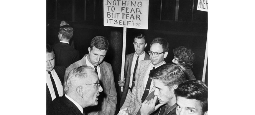 «Берчеры» или «берчисты» – как именовали себя активисты «Общества Джона Берча» – на словах выступали вроде бы против коммунизма. А на деле заявлялись на митинги борцов за гражданские свободы и, выкрикивая оскорбления, провоцировали драки с правозащитными активистами. А в их рядах было немало евреев. «Дух антисемитизма пронизывал общество насквозь, – рассказывает Мэттью Даллек. – Сверху донизу!»