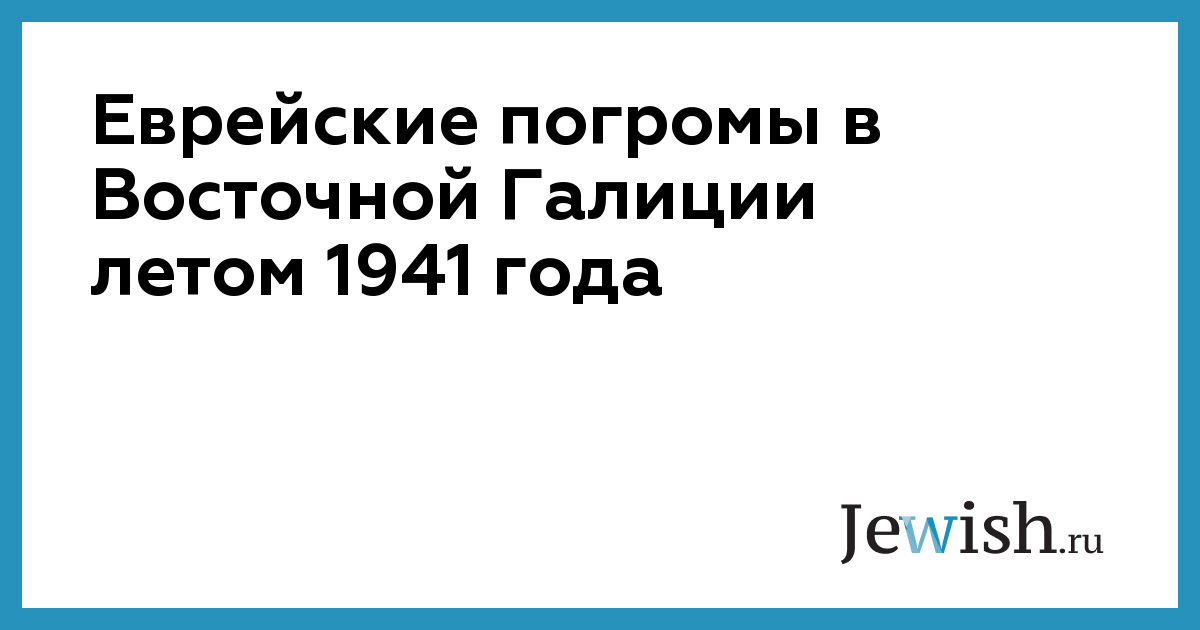 Автор статьи (родилась в 1960 году) — немецкий историк и политолог. Помимо прочего, опубликовала в Германии книгу по истории Ягеллонского университета во время оккупации Польши. В 80-х годах сотрудничала с польскими оппозиционными кругами. С 1966 года живет в Польше в качестве корреспондента немецкой прессы. Данный текст — сокращенная версия статьи, которая вскоре должна появиться в сборнике "Tematy polsko-ukrainskie", Biblioteka Borussil, Olsztyn ("Польско-украинские темы") в серии под редакцией Роберта Трабы (Robert Traba). Когда 22 июня 1941 года Германия напала на СССР, в Восточной Галиции (Западная Украина) проживало около 540 тысяч евреев. На помощь своих соседей-христиан (за немногими исключениями) евреи рассчитывать не могли. Наоборот: сразу после вторжения немецких войск, а иногда еще до их прибытия западные украинцы и поляки совершали насилие по отношению к евреям.