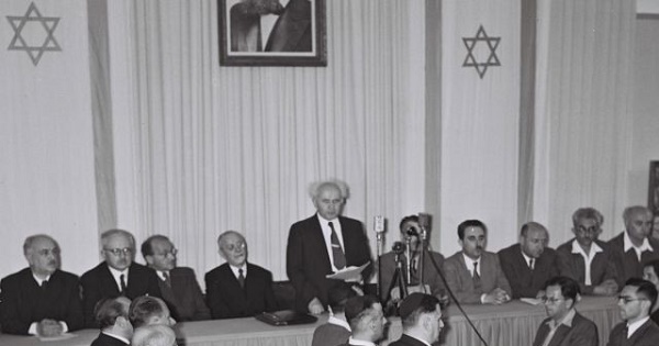Бен-Гурион прочел Декларацию независимости, которая начиналась кратким прологом, рассказывающим о многовековой связи еврейского народа со своей прародиной. «Поэтому мы, члены Народного совета, представители еврейского населения страны и сионистского движения, в день окончания британского мандата в Эрец-Исраэль в силу нашего естественного и исторического права, а также на основании решения Генеральной Ассамблеи ООН настоящим провозглашаем создание еврейского государства в Эрец-Исраэль — Государства Израиль», — зачитал в торжественной обстановке будущий премьер-министр.