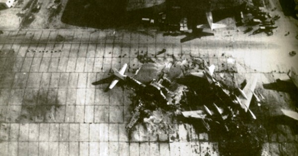 Чтобы остаться незамеченной, вся эскадра прошла вдоль берега моря на минимальной высоте, с выключенными огнями. Лишь фосфоресцирующие пластины, укрепленные на концах несущих винтов, позволяли летчикам не терять друг друга в темноте.