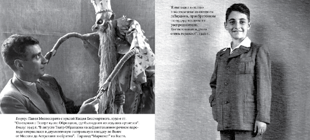 После ареста Якова Бродского Мишу забрали друзья матери, Галина Нестеровна и Павел Георгиевич Мелиссарато, ставшие ему действительно новыми родителями. Павел Мелиссарато был актёром кукольного театра Образцова, а Галина – театральным литературным сотрудником. Родную Одессу они давно покинули, так что в мае 1945 года стал москвичом и Миша. С этого момента интонация воспоминаний Михаила Бродского резко меняется. На место трагической растерянности приходит лёгкая, но не лишённая горечи ирония человека, близкого к артистической среде и отмечающего все пороки советской системы. Вот он рассказывает, как актёров организованно водили по комиссионкам перед заграничной поездкой – нельзя же дать понять иностранцам, что у нас дефицит всего и буквально надеть нечего. А вот радуется, что его приёмная мать по семейным обстоятельствам была вынуждена уволиться из Малого театра. Через несколько лет после этого в стране приключилась борьба с космополитизмом и ей, еврейке и жене одесского грека, отягощённой родственниками за границей и приёмным сыном с клеймом жителя оккупированных территорий, на таком видном месте точно бы не поздоровилось.