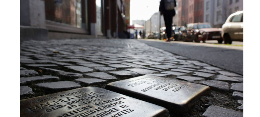 *Справка. В тротуары улиц Берлина встроены медные пластинки с именами евреев, проживавших в том районе и депортированных в концлагеря. Поскольку многие дома перестроены и перешли давно в частную собственность, муниципалитет Берлина принял решение использовать не стены домов, а именно тротуары, которые являются собственностью города. Проект задуман, чтобы увековечить память погибших.
