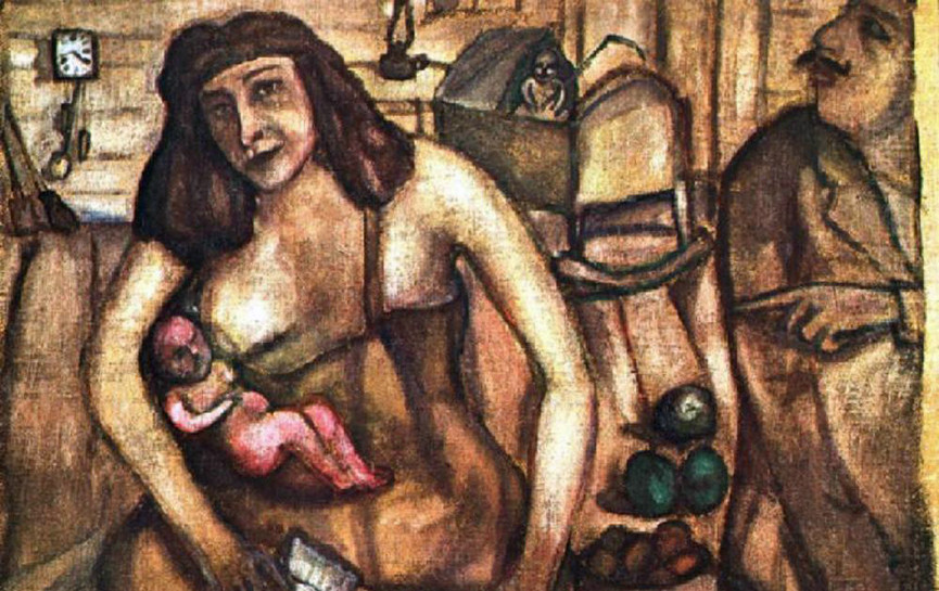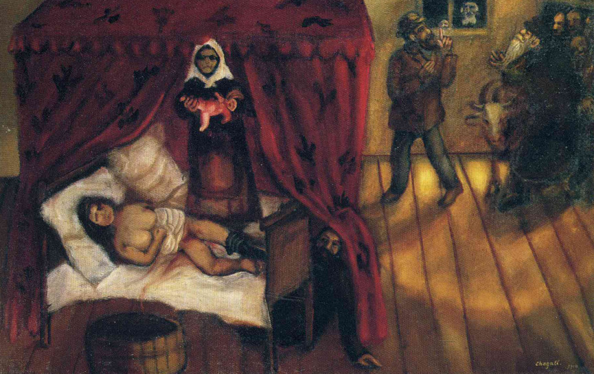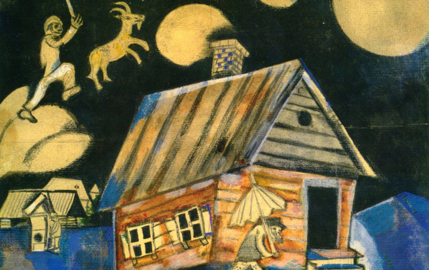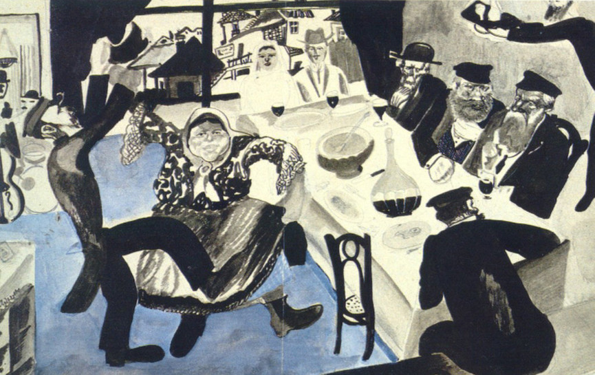 «Когда у отца появились средства, он сразу дом продал. Мне эта халупа напоминает шишку на голове зеленого раввина с моей картины или картофелину, упавшую в бочку с селедками и разбухшую от рассола. Глядя на нее с высоты нового “величия”, я морщился и думал: “Как же я здесь ухитрился родиться? Чем здесь люди дышат?” Когда мой дед, почтенный старец с длинной черной бородой, скончался с миром, отец за несколько рублей купил другое жилье. Там уже не было по соседству сумасшедшего дома, как на Песковатиках. Вокруг церкви, заборы, лавки, синагоги, незамысловатые и вечные строения, как на фресках Джотто. Явичи, Бейлины – молодые и старые евреи всех мастей трутся, снуют, суетятся. Спешит домой нищий, степенно вышагивает богач. Мальчишка бежит из хедера. И мой папа идет домой».