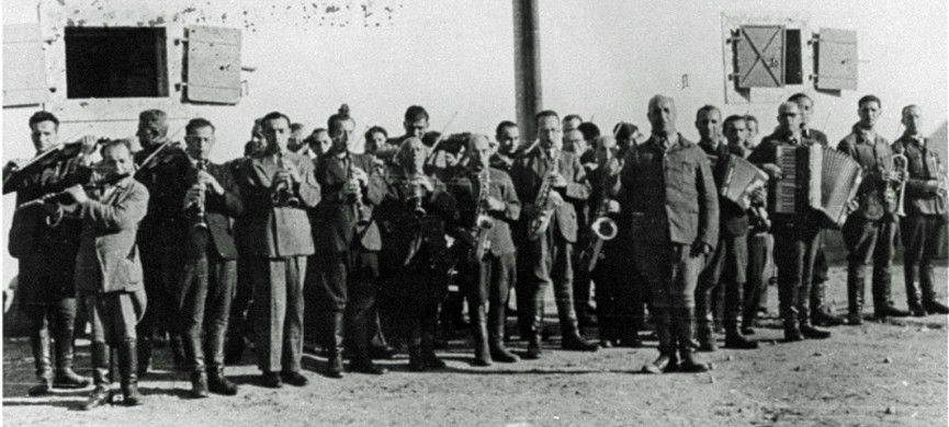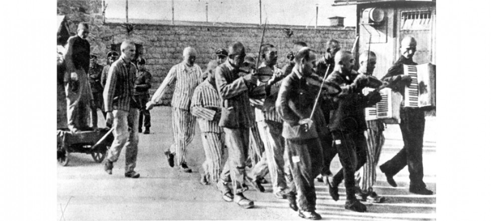 «Каждое утро музыка прорезается сквозь мой сон. Она слышится вдалеке, когда нам дают хлеб и когда заключенные идут работать. Иногда звуки относит ветер, но я всегда слышу барабанный бой. Узники смотрят друг на друга, потому что чувствуют – это инфернальная музыка. Мелодий мало, с десяток, одни и те же каждый день: марши и популярные немецкие песни. Это голос лагеря. Когда мы слышим его, лежа на нарах, мы знаем, что снаружи маршируют наши товарищи. Их души мертвы, и музыка управляет ими подобно тому, как ветер заставляет плясать упавшие листья». Так поэт Примо Леви описывал оркестр лагеря Моновиц, где ему пришлось провести почти год. Этот ансамбль вовсе не был уникальным явлением – такие оркестры существовали во многих концлагерях. Обычные узники презирали оркестрантов, называя их «марионетками нацистов».