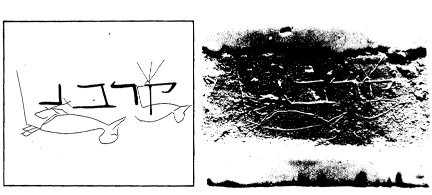 На ней написано «кути» – именно так в Талмуде называют самаритян. Однако сами самаритяне себя так никогда не называли, поскольку считали и продолжают считать себя евреями. Название «кути» было, скорее всего, даже обидным для них. Так что нацарапал слово, похоже, кто-то из евреев, желая высказать свои эмоции в чей-то адрес, как сейчас бы не очень интеллигентный человек написал бы на заборе «Ваня-жид» или «Вася-чучмек».