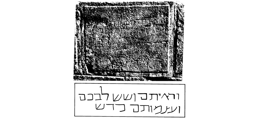 Обнаружил он её на одном из камней Западной стены – чуть южнее участка, называемого Стеной Плача. Начиная со времен крестоносцев эта часть стены была скрыта под завалами камней и землей, и только после Шестидневной войны снова предстала взору. Но во времена Храма уровень мостовой был много ниже, и случайный прохожий не мог бы добраться до этого камня и нацарапать надпись. Так что время ее написания определяется где-то между IV и VIII веками, что подтверждается и особенностями начертания букв.