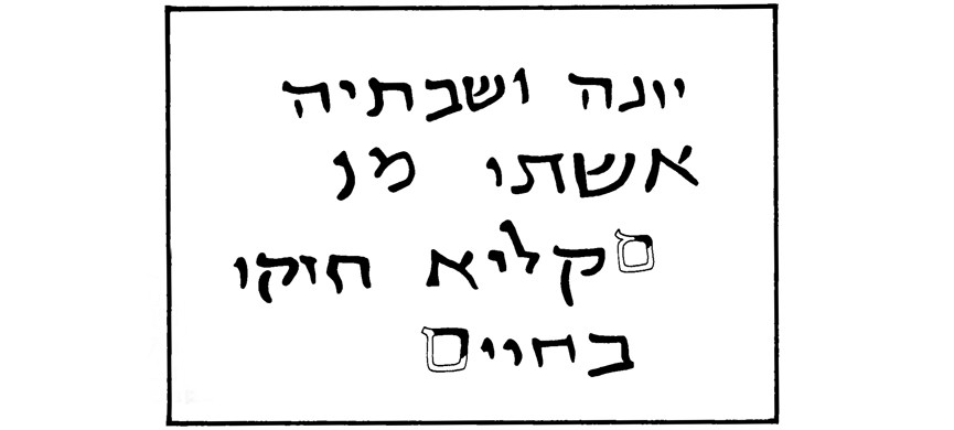Перевести её можно примерно так: «Йона и его жена Шабтая из Сикалии укрепились в жизни». Сикалия – это, конечно же, Сицилия. А укрепились в жизни – значит выздоровели. Таких надписей по всему Иерусалиму найдено множество. Оставляли их обычно паломники из дальних стран, совершившие путешествие в благодарность за своё выздоровление. Во времена Храма они бы принесли благодарственную жертву Творцу, а тут, пересекши моря и пустыни в многомесячном паломничестве, вынуждены были ограничиться уличным граффити.