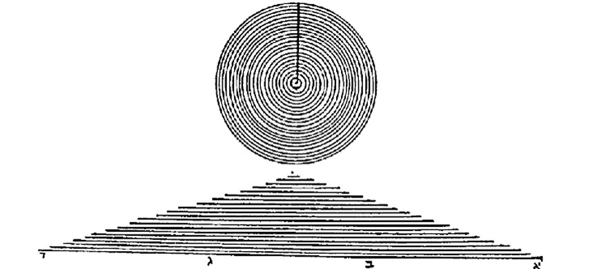 Одним из его математических достижений был вывод формулы площади круга из длины окружности. Это доказательство было позже приведено мудрецами следующего поколения в комментарии на Талмуд, называемом Тосафот, и так стало широко известно среди евреев. Оно поражает своим изяществом: разделите мысленно круг на множество концентрических круглых же «слоёв» с общим центром. Теперь мысленно распрямите эти слои. У вас получится равнобедренный треугольник – самый наружный слой станет самым нижним в этом треугольнике, следующий «лежит» на нем и т.д., а самый маленький «слой» – уже почти точка. Поскольку основание этого треугольника – это длина исходной окружности, высота его – радиус её же, а площадь треугольника известна – основание умножить на высоту и поделить пополам, то значит – площадь круга равна длине окружности, умноженной на радиус и разделенной на два. Представить это доказательство можно на этом графике.