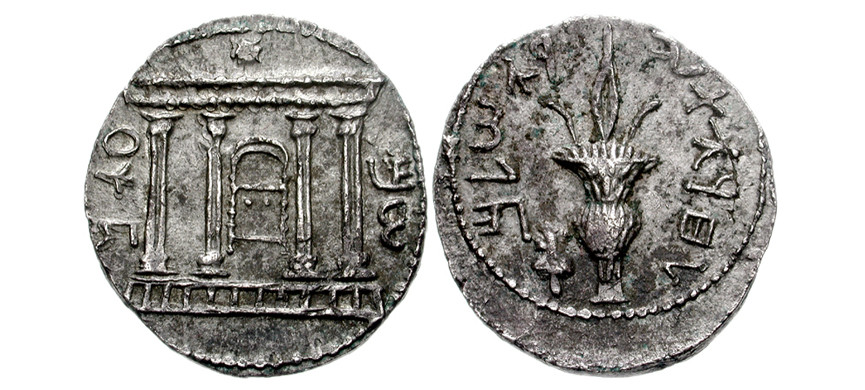 Но особенный интерес вызывают монеты с изображением фасада Храма. Ведь когда они чеканились, было еще немало евреев, своими глазами видевших это величественное здание до того, как его уничтожили римские захватчики. Одно из изображений широко известно – оно отчеканено на распространенной монете достоинством в тетрадрахму.