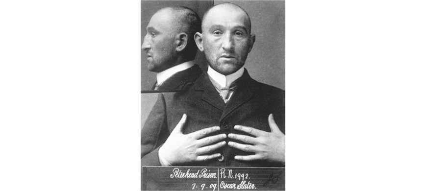 Оскар Слейтер родился в Германии в еврейской семье и до 19 лет не покидал родину. Затем, уклоняясь от военной службы, он уехал в Лондон. Сам он утверждал, что в Глазго работал дантистом, но полицейские знали его как «шулера и прощелыгу, который со всеми грабителями города был на легкой ноге». Адвокат Слейтера так боялся, что подзащитный ляпнет что-нибудь не то и окончательно все испортит, что посоветовал ему помалкивать, хотя Оскар просил слова. В итоге судом присяжных Слейтер был признан виновным и приговорен к смертной казни.
