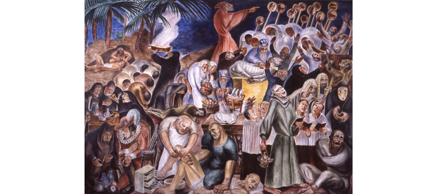 В начале 30-х судьба свела Закхейма со скандальным мексиканцем Диего Риверой. Большинству он известен как неверный муж художницы Фриды Кало. Но в мире искусства многие ценят Риверу едва ли не больше, чем Фриду. Убежденный коммунист – и позже троцкист, исключенный за это из компартии Мексики, – Ривера прославился монументальными настенными фресками, или муралами, изображавшими жизнь и страдания трудового народа. В Мексике движение муралистов получило государственную поддержку после победы революции в 1917-м. Ривера расписывал в числе прочих стены Национального дворца и Министерства народного просвещения в Мехико, а еще занимал пост директора местной академии художеств.