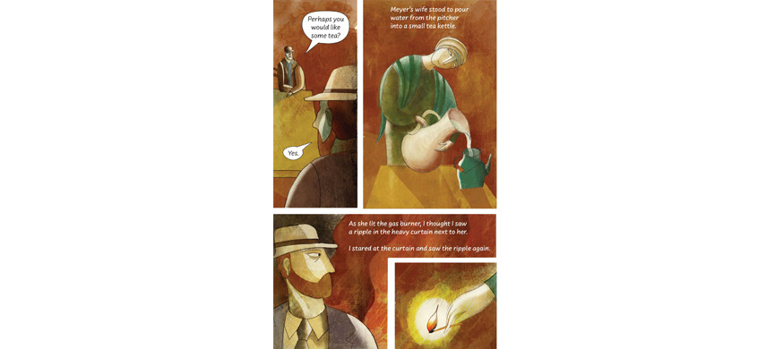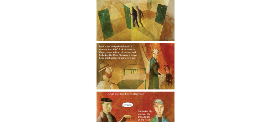 Наконец, третья, совсем недавно вышедшая книга Ольсвангер – это графический роман «Визит в Москву», проиллюстрированный известной художницей Евгенией Найберг. В основе книги – рассказ Гроссмана о его поездке в советскую Москву в 1965 году. Вообще, по словам Ольсвангер, изначально они с Гроссманом готовили к публикации очередную историю о Холокосте, в которой бы фигурировали члены семьи раввина, которые принимали участие в организации подпольного движения в Белостокском гетто. Делясь подробностями о жизни польских родственников, Гроссман в том числе рассказал Найберг и о своих удивительных приключениях в Москве – туда он в 1965 году вместе с восемью другими американскими раввинами поехал за правдой: «выяснить, действительно ли евреи подвергаются беспрестанным гонениям и скрывают свою идентичность в страхе перед КГБ».