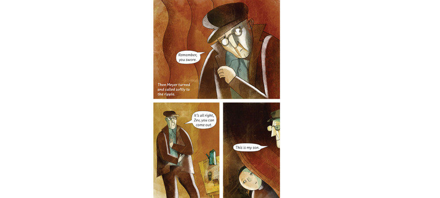 На базе рассказа Гроссмана о его семье сначала в 2012 году появился графический роман «Гринхорн» – о нью-йоркской йешиве, в которую в 1946 году прибывает мальчик Даниэль, чудом переживший Холокост. Он почти не разговаривает – и ни при каких обстоятельствах не расстается с маленькой жестяной коробкой: никто не знает, что там внутри. Дружить с Даниэлем в итоге хочет лишь заика Аарон – такой же, как и он, изгой. В итоге этот небольшой графический роман не только показывает трагедию Холокоста на конкретном примере одного мальчика, но и поднимает множество других важных тем: ценность дружбы и ее способность исцелять, а также необходимость найти свой голос – и озвучить все то, что у тебя внутри. Несмотря на краткость реплик, язык – то, что безусловно заслуживает в этой книге огромного внимания: мальчишки в йешиве четко транслируют речь бруклинской молодежи середины 40-х, в которой находится место и идишу, и американскому сленгу. По книге, между прочим, сняли проникновенный короткометражный фильм – он не раз становился победителем самых разных кинофестивалей.