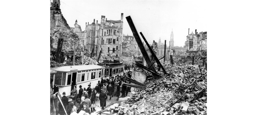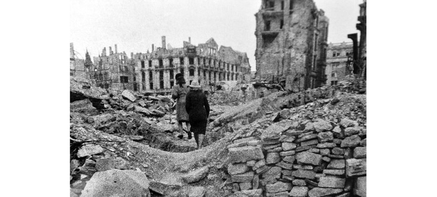«Она ведёт меня на улицу, идущую вдоль еврейского кладбища. Оно разрушено бомбежкой: надгробия почернели и потрескались. Вдалеке маячат руины синагоги с почерневшими стенами. Несколько одетых в чёрное людей стоят на коленях перед свежими могильными холмиками. И тогда она говорит: “Вот это и есть Германия – разбомбленное кладбище”».