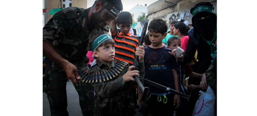 Армия обороны Израиля показала, как ХАМАС использует палестинских детей в военных действиях. Среди документов, обнаруженных в секторе Газа, фотографии десятилетних мальчишек с настоящими автоматами и гранатометами в руках, а также агитационные материалы. В листовках, изъятых в штабе батальона ХАМАС «Зейтун», приводятся примеры заданий, которые «можно и нужно поручать детям». Так, предлагается использовать несовершеннолетних для доставки сообщений и боеприпасов, а также отправлять их в зоны боевых действий для оценки ущерба. Авторы агиток настоятельно рекомендуют прятать взрывчатку в мешках с овощами. По их мнению, ребенок с мешком овощей вызовет меньше подозрений у израильских военных.