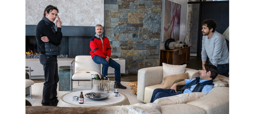 Четверо друзей собираются в загородном особняке в заснеженных горах. Хозяин дома и инициатор встречи Хьюго в исполнении Джейсона Шварцмана – самый «бедный» из них. Его состояние составляет всего половину миллиарда. Первый гость – Рэндалл, венчурный капиталист и старейшина группы. По прогнозам врачей, ему осталось всего несколько лет жизни, а потому этот человек одержим мыслью о цифровом бессмертии. Рэндалла играет Стив Карелл, мастерски изображая старого притворщика, сколь заносчивого, столь и коварного. Двое остальных – это друзья-соперники Венис и Джефф. Первый напрочь оторвался от реальности и стал причиной мирового кризиса, а второй пытается противостоять хаосу и выглядит на фоне прочих вполне «хорошим парнем». Эту парочку играют Кори Майкл Смит и Рами Юссеф. Слово за слово, и вот уже Рэндалл и Венис планируют государственный переворот, а потом и убийство друга. Хьюго же готов присоединиться к любому зловещему плану, лишь бы получить деньги на запуск собственного проекта.
