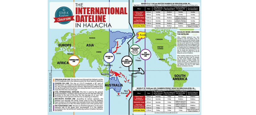 В XIX веке в мире была определена общепринятая линия перемены дат – меридиан в 180º долготы. Однако было очевидно, что это – совершенная условность, а раз так, то с какой стати она должна определять религиозную реальность шаббата? Тем более что сами народы мира двигают ее, как хотят, чтобы она не пересекала сушу и чтобы в соседних поселках не оказывалась бы разная дата. Меридиан в 180º долготы пересекает, например, Чукотку и Алеутские острова, но принятая линия перемены дат огибает их, соответственно, с востока и с запада.