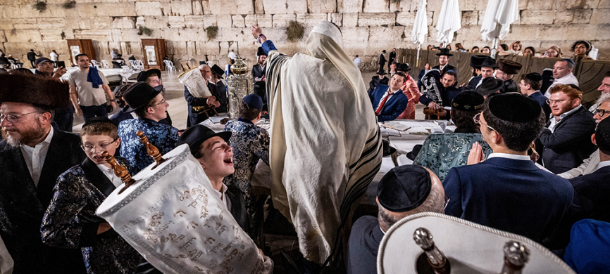 А в завершающие моменты празднества, когда отшумели уже танцы и все находящиеся в синагоге евреи вышли прочесть Тору, над кафедрой для её чтения накидывают балдахин, подобный свадебному, под ним собираются все находящиеся в синагоге дети самых разных возрастов и хором поют последние стихи Торы: «И не было более пророка в Израиле, подобного Моисею, которому Всесильный позволил бы познать Себя лицом к лицу, по знамениям и чудесам, которые совершил он, по воле Всевышнего, в земле Египетской с фараоном, со всеми его рабами и со всей его страной, и по всем могучим деяниям и по всем грозным свершениям, которые сделал Моисей на глазах у всего Израиля». И слушая звонкие детские голоса, понимаешь: они принимают эстафету.