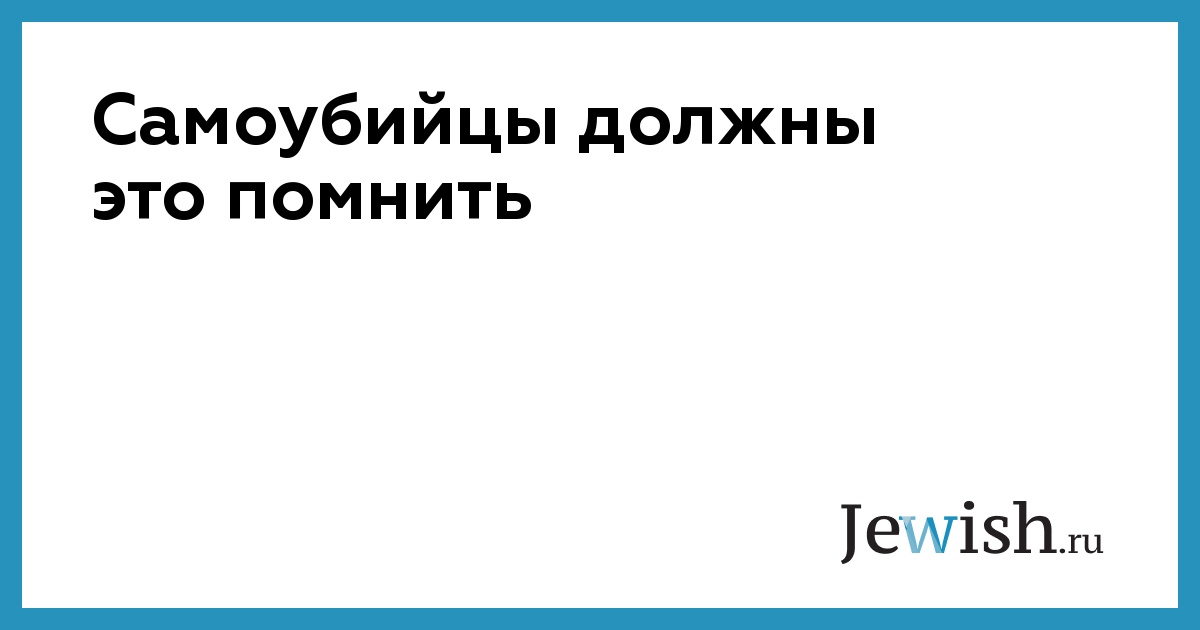 | Строгость иудаизма по отношению к самоубийцам скорее отеческая, чем обвиняющая. На самом деле это сострадание. Никто не обвиняет мертвых. Считается, что это поступок совершается в состоянии аффекта, в результате временного помешательства. | ||
